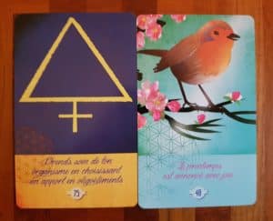 48 la lame du rouge gorge « Le printemps est annoncé avec joie » Si vous tirez cette lame, elle vous donne un repère de temps par